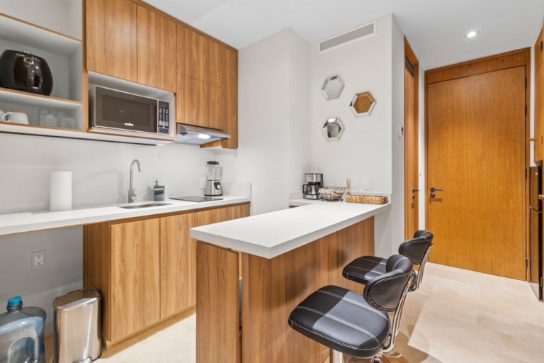 Escápate a este acogedor estudio con vista al mar en Zantamar, un moderno condominio frente a la playa. Completamente equipado, ofrece todo lo necesario para una estancia cómoda y relajante. El complejo cuenta con dos albercas comunes, ideales para refrescarte y disfrutar del sol, además de espacios diseñados para relajarte y pasar momentos inolvidables junto al mar. Situado en el tranquilo poblado de La Cruz de Huanacaxtle, este estudio es perfecto para parejas o quienes buscan un refugio frente al océano, combinando descanso, privacidad y el encanto de la costa.