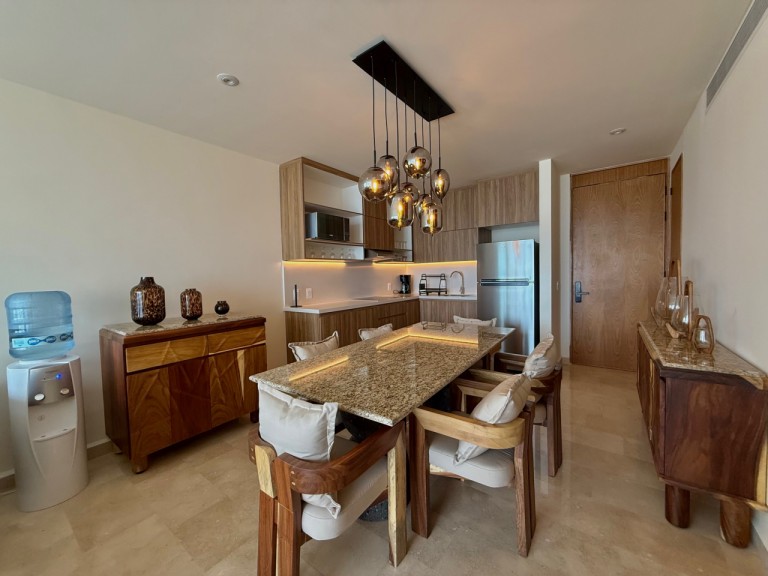 Disfruta de unas vacaciones de ensueño en este espacioso departamento de dos recámaras en Zantamar, un moderno condominio frente al mar. Completamente amueblado y equipado, ofrece comodidad y funcionalidad para toda la familia o grupo de amigos. El complejo cuenta con tres albercas comunes, perfectas para relajarse bajo el sol, además de áreas diseñadas para el descanso y el entretenimiento. Ubicado en el tranquilo y pintoresco poblado de La Cruz de Huanacaxtle, este departamento es ideal para quienes buscan combinar la comodidad del hogar con la belleza del mar, creando recuerdos inolvidables en un entorno paradisíaco.