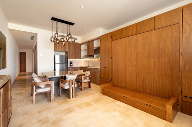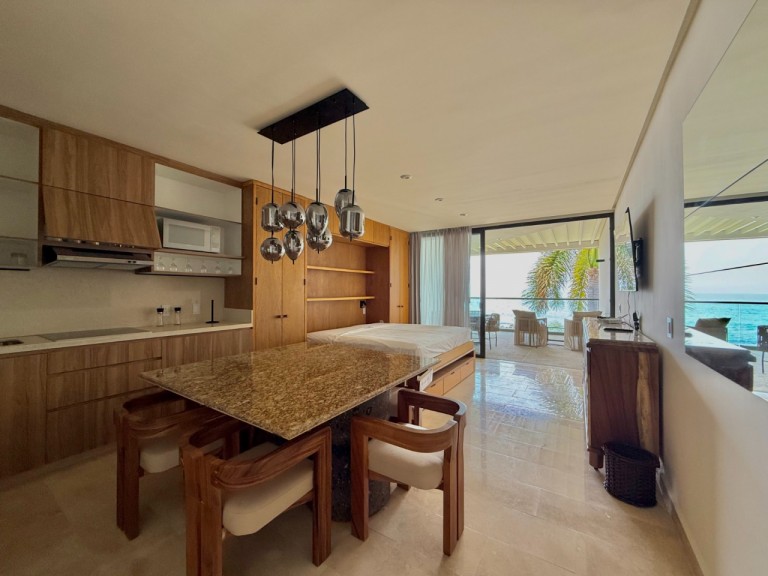 Este hermoso departamento frente al mar se encuentra en el segundo nivel del exclusivo desarrollo Zantamar, en La Cruz de Huanacaxtle. Es un espacio completamente nuevo, con un diseño rústico moderno que combina calidez, estilo y funcionalidad. Cuenta con una recámara principal, un estudio privado y una cama Murphy que permite alojar cómodamente a varios huéspedes. Además, dispone de tres baños completos, lo que brinda mayor comodidad y privacidad. La amplia terraza ofrece una vista espectacular al océano, ideal para relajarse y disfrutar del entorno. El departamento está totalmente equipado con todo lo necesario para una estancia cómoda, ya sea corta o prolongada. Zantamar ofrece amenidades de primer nivel como tres albercas comunes, área de trabajo, gimnasio y una zona de juegos para niños. Su ubicación privilegiada frente a la playa, combinada con el confort del espacio, lo convierte en una opción ideal para quienes buscan una experiencia exclusiva junto al mar.
